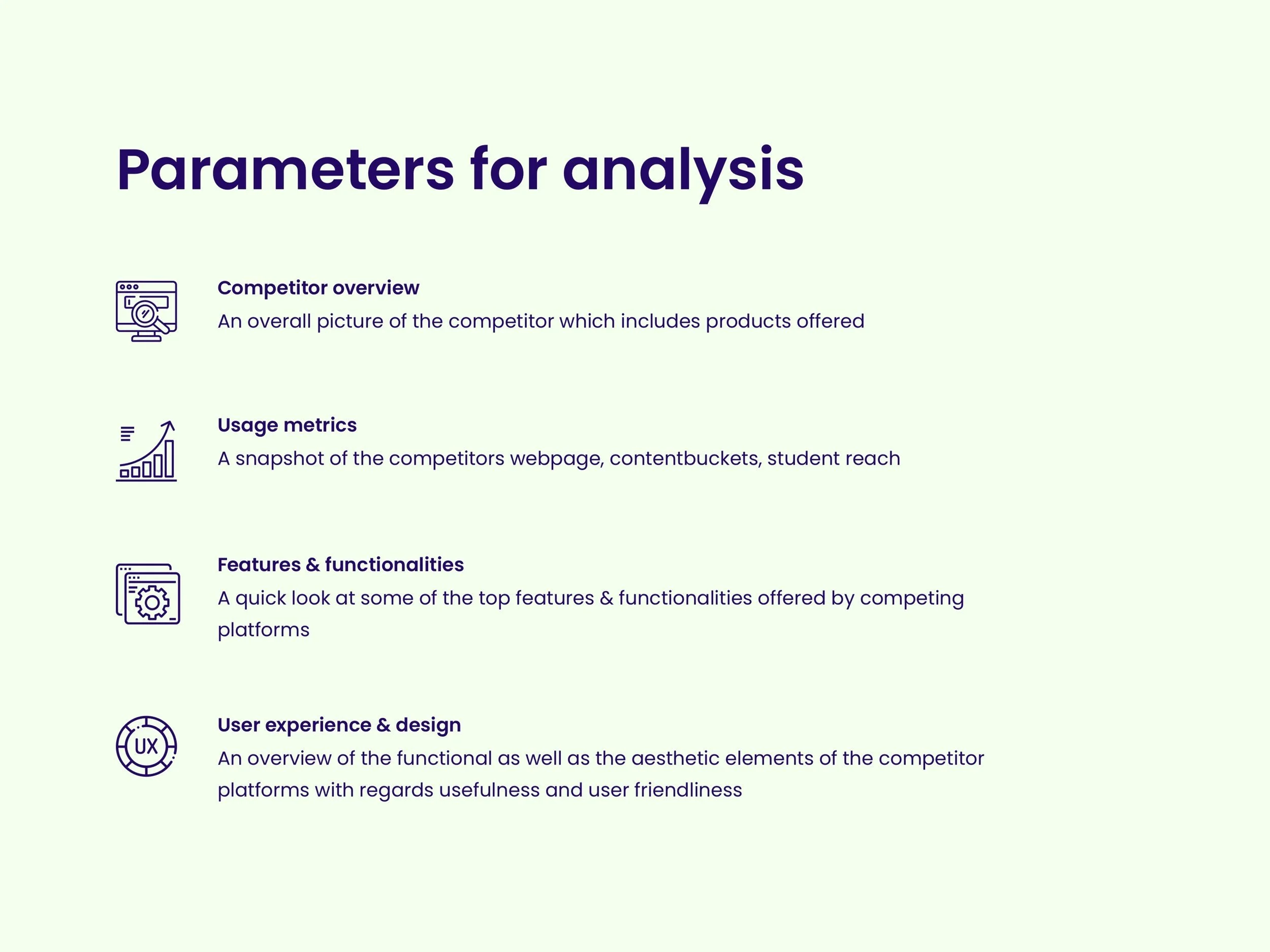 After understanding the mindset and vision of the client and product, we jumped into analysing the competition.